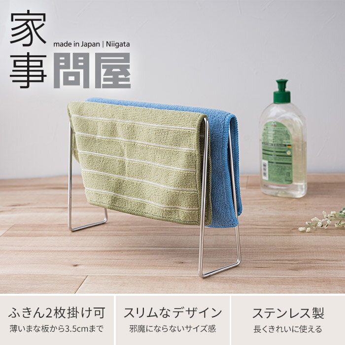 家事問屋 ふきん掛け (ふきんハンガー タオルハンガー ステンレス) ふきん2枚掛けもOK 長く使えるステレンス製ふきん掛け 使用頻度の多いキッチンふきんを掛けることができるスタンド。