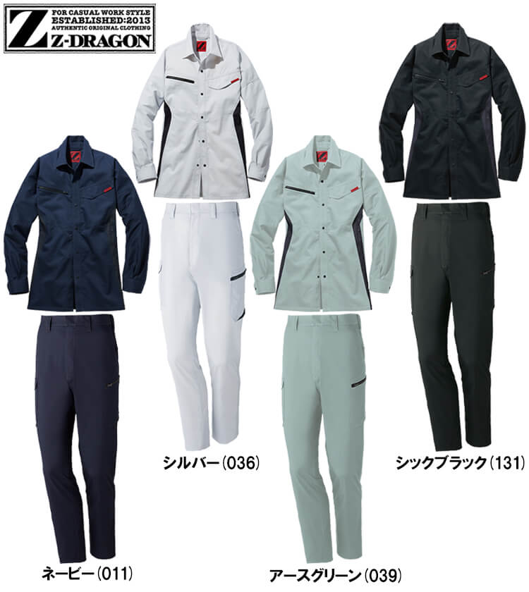 作業服 上下セット ジードラゴン Z-GRAGON 長袖シャツ 76504 SS-LL & ノータックカーゴパンツ 76502 70cm-88cm 春夏 ストレッチ 制電 作業着 メンズ