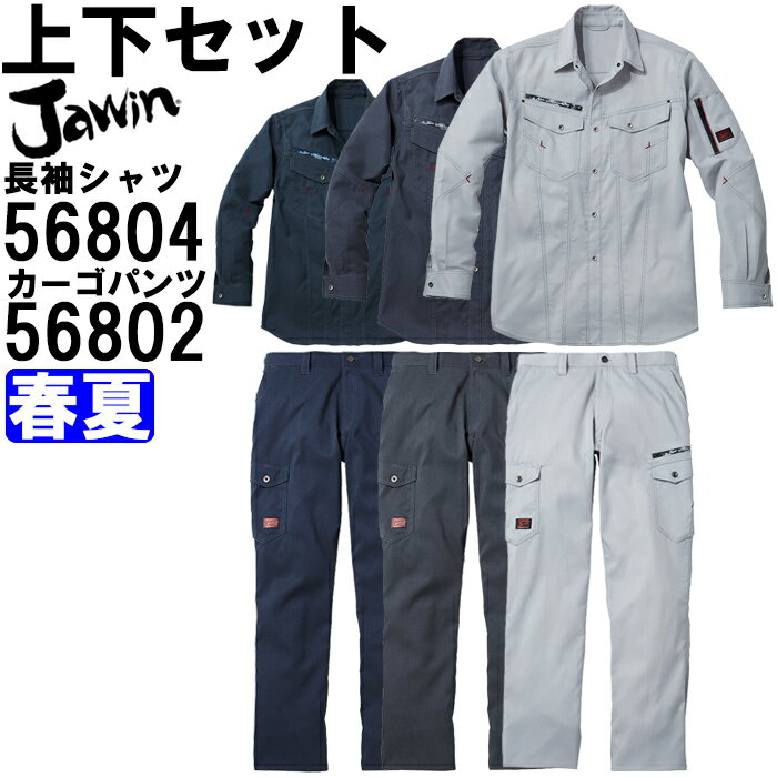 作業服 上下セット 自重堂 ジャウイン Jichodo Jawin 長袖シャツ 56804 EL & カーゴパンツ 56802 73cm-88cm 春夏 ストレッチ 作業着 メンズ