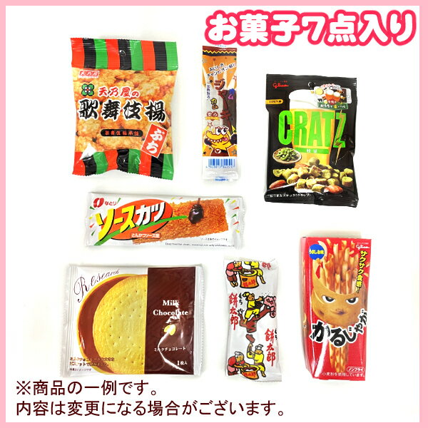 内容は、その都度異なる場合がございますが、 お菓子7点入ります。