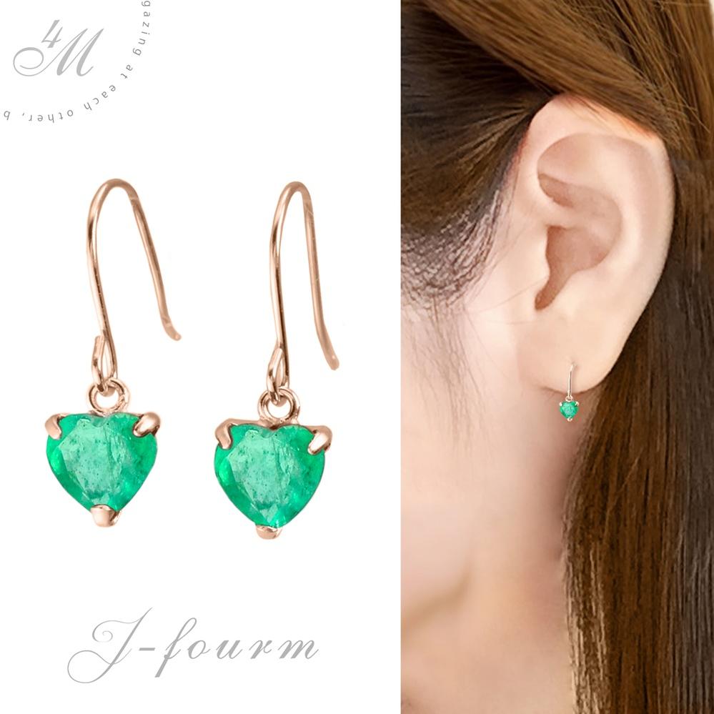 エメラルド ピアス K10 ピンクゴールド ハートシェイプ 両耳用 4mm ハート枠 フック フック式 5月 誕生石 天然石 シンプル 丸 送料無料 あす楽fourm クリスマス 母の日 レディース メンズ 男性 女性 ラッピング 包装 袋 誕生日 プレゼント ケース 箱 華奢 大きいサイ