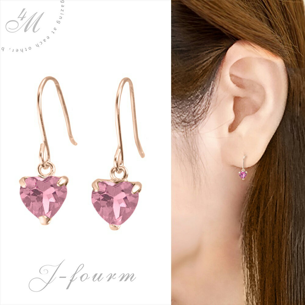 ピンクトルマリン 10月 誕生石 ピアス 両耳用 K10 ホワイトゴールド ハートシェイプ 4mm ハート枠 フック フック式 天然石 シンプル 丸 送料無料 レディース メンズfourm クリスマス 母の日 男性 女性 ラッピング 包装 袋 誕生日 プレゼント ケース 箱 華奢 大きいサ
