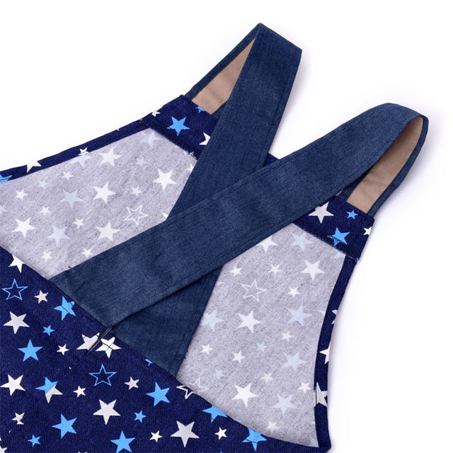 商品名バッククロス子どもエプロン(100〜120cm) ブリリアントスター 紺商品の特長1.ひとりで簡単に着脱できるバッククロスタイプ肩紐が背中で交差しているので肩からずり落ちにくく、紐がうまく結べない小さな子どもでも、着脱簡単。